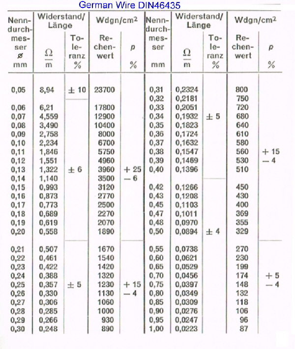 British , American and German Wires at a Glance